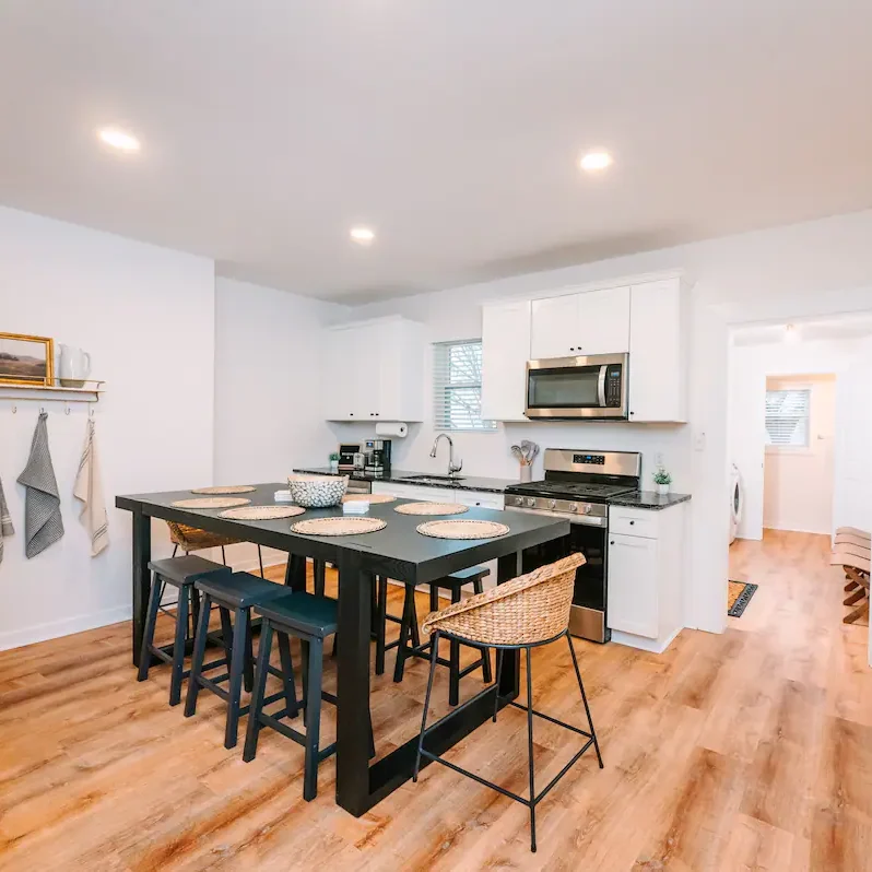 This house was the perfect place for a long weekend. The house had a good layout and was well stocked with cleaning supplies, paper towels, basic cookware, and enough dining ware for a larger group. The beds were clean and comfortable. I definitely recommend this house if you want a comfortable space for a larger group and are okay with traveling by car.